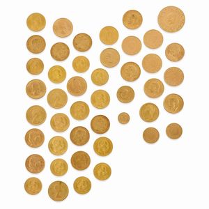 oro giallo alto titolo, Peso g 253,75 composto da 17 marenghi, 10 sterline, 1 moneta da due rand del Sudafrica, [..]