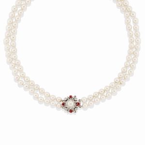 in oro bianco 18k, Peso g 67,70 cm 46,00 a due fili di perle coltivate giapponesi di mm 6,50/8,50 circa, chiusura [..]