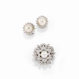 in oro bianco 18k, Peso g 19,30 cm 1,40-2,50 al centro perle coltivate Giappone di mm 8,00-9,00 circa, diamanti [..]