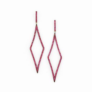 in oro brunito 18k, Peso g 6,55 cm 1,60x7,00 di forma romboidale, rubini taglio rotondo per totale ct 2,30 circa, [..]