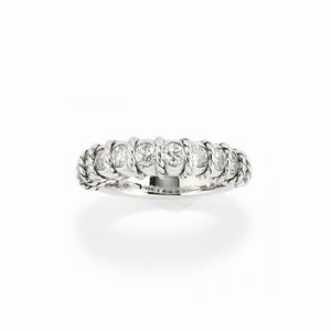 in oro bianco 18k, Peso g 7,10 misura 11 a mezzo giro di diamanti taglio brillante per totale ct 1,00 circa.