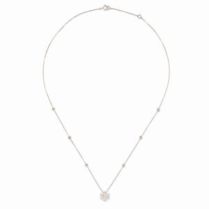 in oro bianco 18k, Peso g 2,50 cm 42,00 maglia ad anelli con interruttori in diamanti, al centro motivo in quadrifoglio [..]