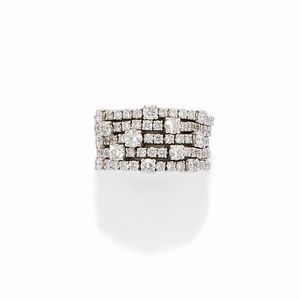 in oro bianco 18k, Peso g 11,20 misura 15 a cinque linee morbide in diamanti taglio brillante per totale ct 5,00 [..]