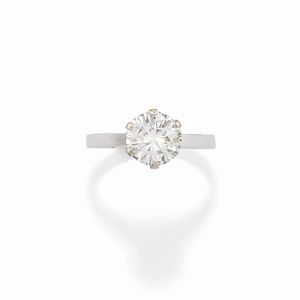 in oro bianco 18k, Peso g 2,70 misura 13 solitario a sei griffes con diamante taglio brillante di ct 1,70 circa, [..]