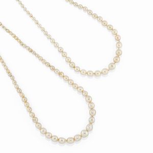 in oro e argento, Peso g 45,60 con perle coltivate da mm 2,50-8,50 circa (alcune prob. naturali), una chiusura [..]