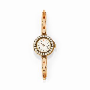 in oro giallo 18k, 9k e argento, Peso g 25,90 mm 26,00 cassa rotonda, quadrante bianco con numeri romani in smalto [..]