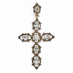 in argento e oro bassa caratura, Peso g 11,45 cm 4,80x5,80 realizzato con acquamarine taglio ovale per totale [..]