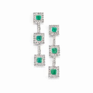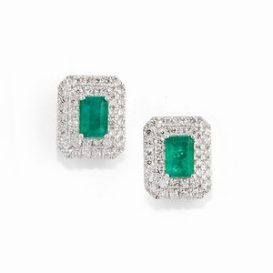 in oro bianco 18k, Peso g 3,50 cm 1,00x1,20 smeraldi taglio rettangolare a contorno ottagonale di ct 1,20 circa [..]