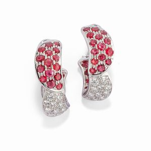 in oro bianco 18k, Peso g 13,40 cm 1,00x1,80 realizzati a doppia voluta, rubini taglio rotondo per totale ct 5,00 [..]