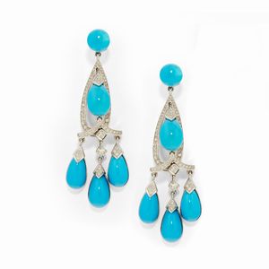 in oro bianco 18k, Peso g 27,00 cm 1,70x6,80 motivo centrale a goccia e parte inferiore frangiata, realizzati [..]