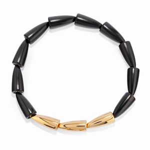in oro giallo 18k, Peso g 78,50 cm 44,00 collezione Calla, con inserti conici in oro giallo ed ebano, con astu [..]