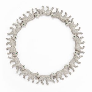 in platino, Peso g 353,00 cm 50,00 realizzata a girocollo con dodici pantere a raccordo snodato e internamente [..]