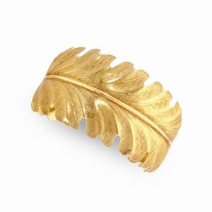 in oro giallo 18k, Peso g 37,00 diametro interno cm 6,00 a schiava, realizzato a foglia.