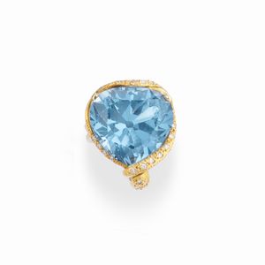 in oro giallo 18k e argento, Peso g 6,80 misura 14 montatura con decoro a fiori, al centro topazio orange taglio [..]