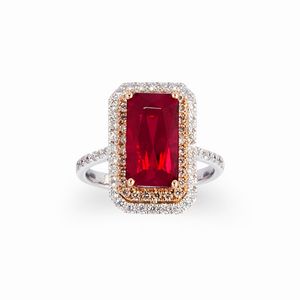 in oro rosa 18k, Peso g 6,22 misura 13 al centro smeraldo taglio rettangolare a contorno ottagonale di ct 2,40 [..]