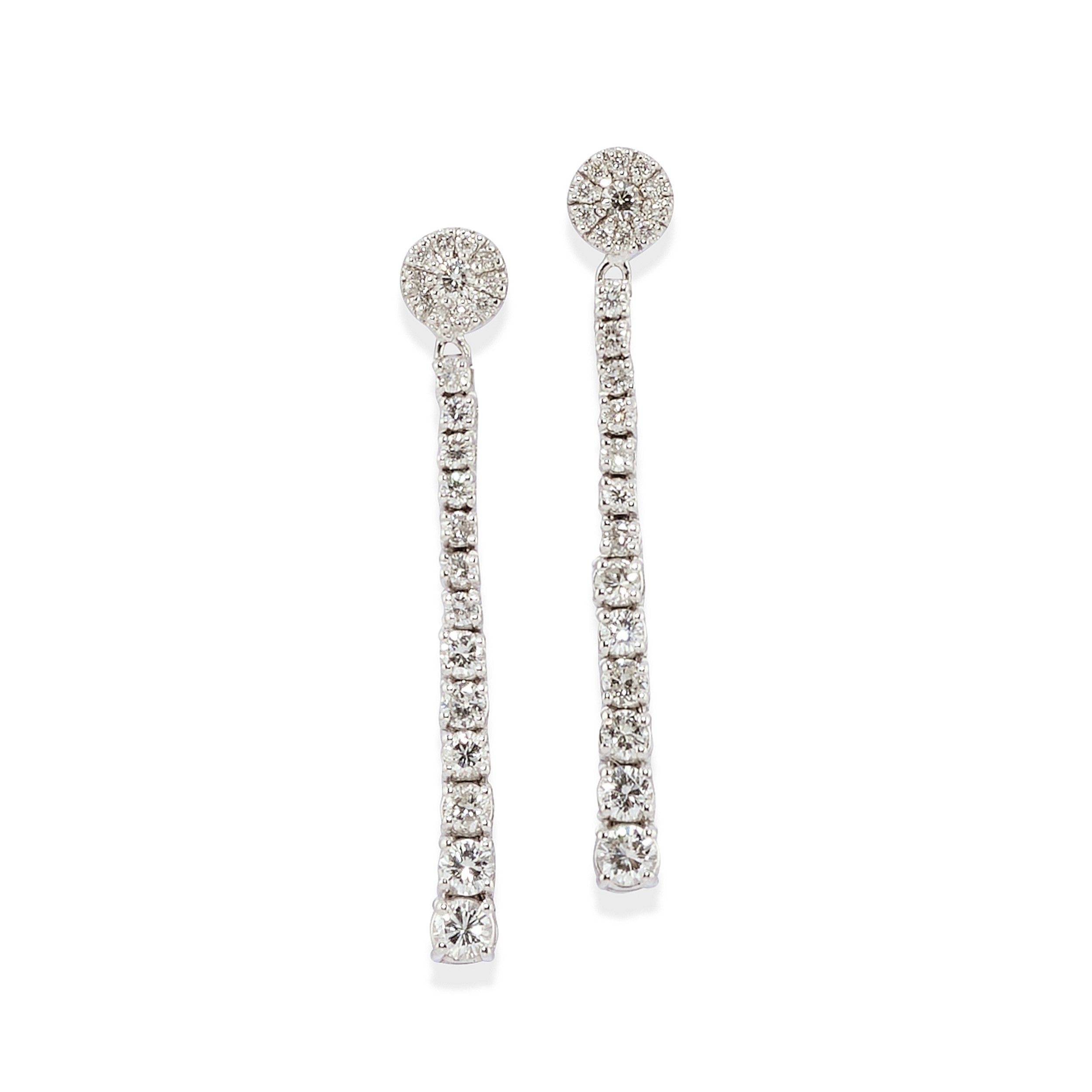 pendenti a maglia morbida, con diamanti taglio brillanti per totale ct 1,80 circa e chiusura perno e farfalla.