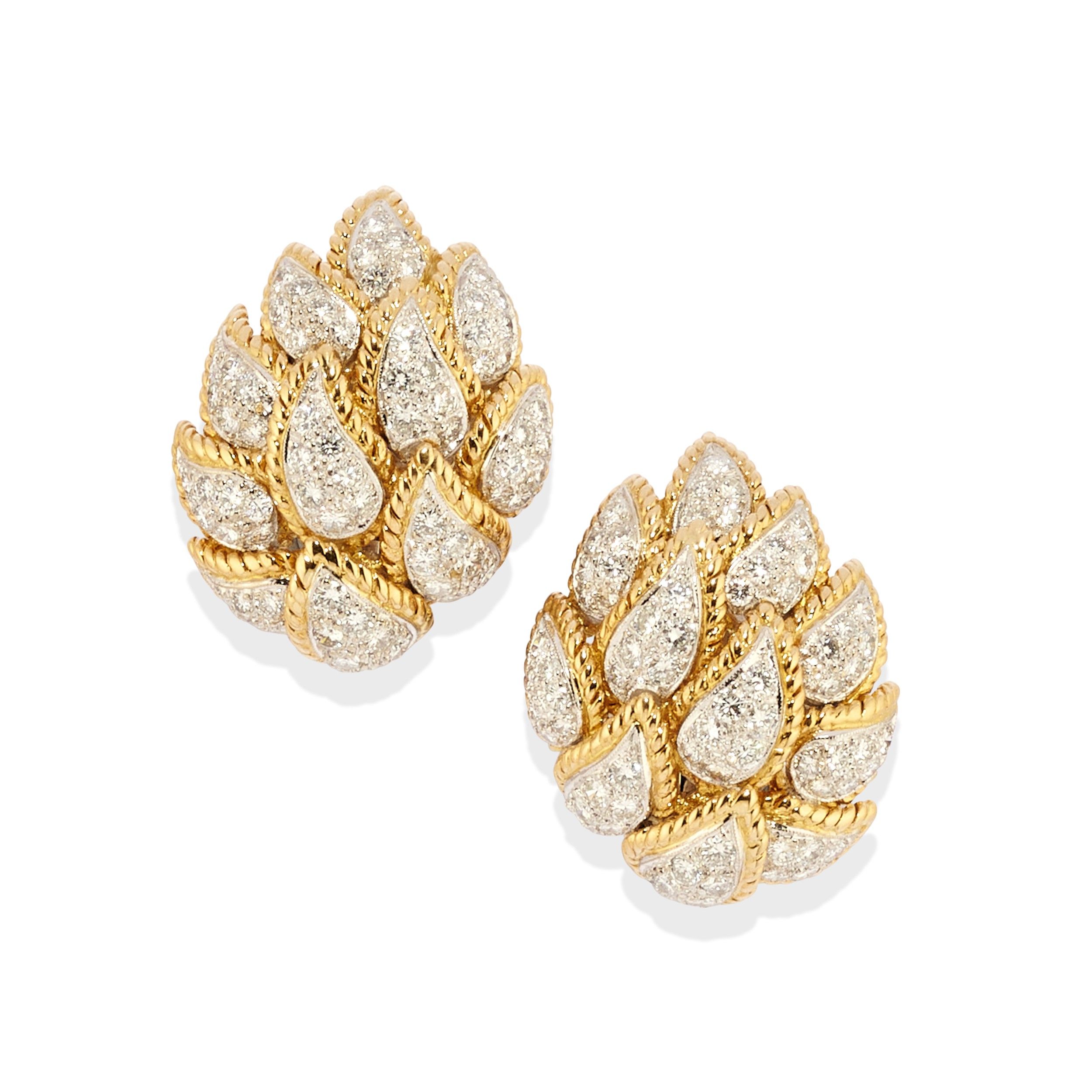 realizzati a foglie, diamanti taglio brillante per totale ct 4,00 circa, chiusura a clip.