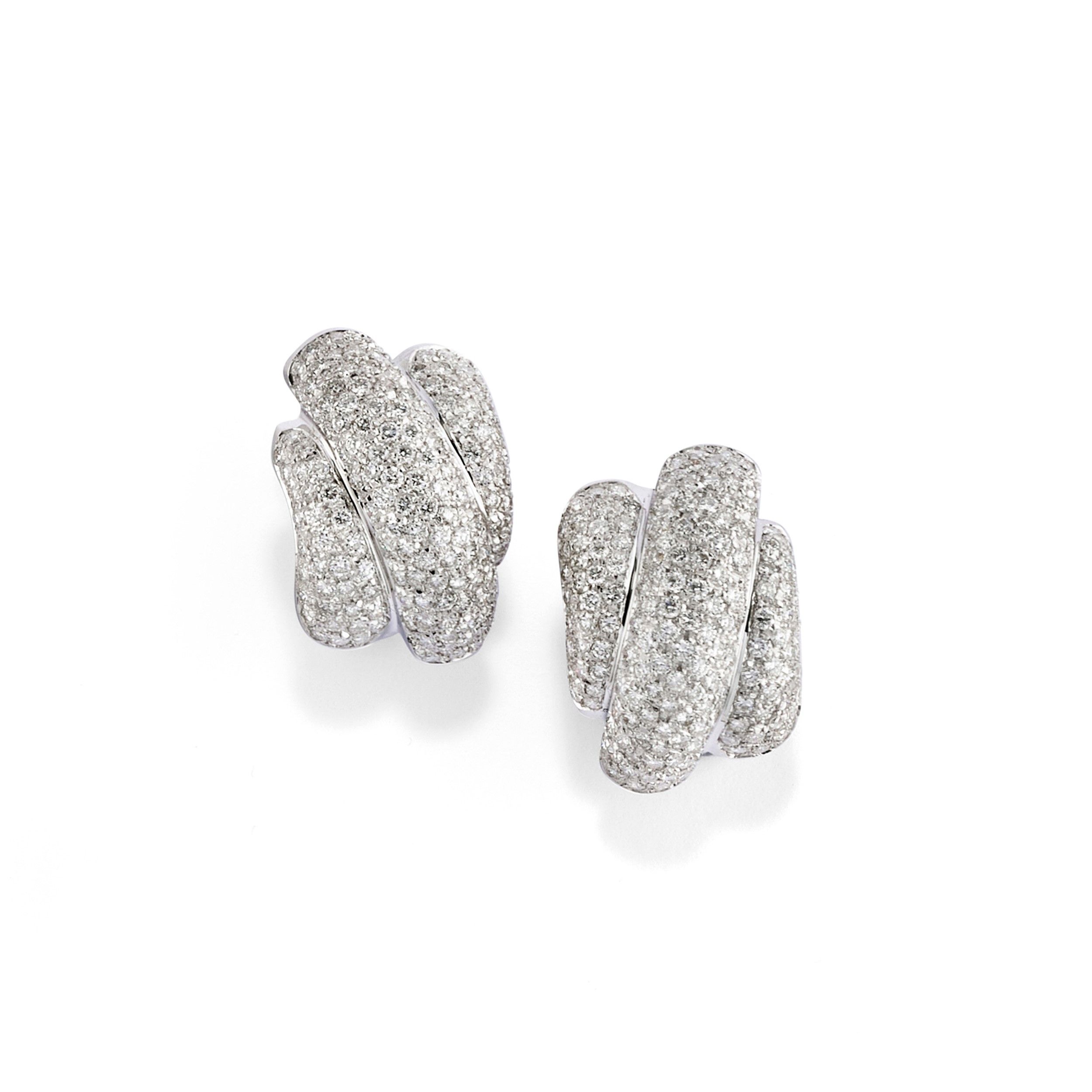 con motivi bombati in diamanti taglio brillanti per totale ct 3,50 circa, chiusura perno e clip.