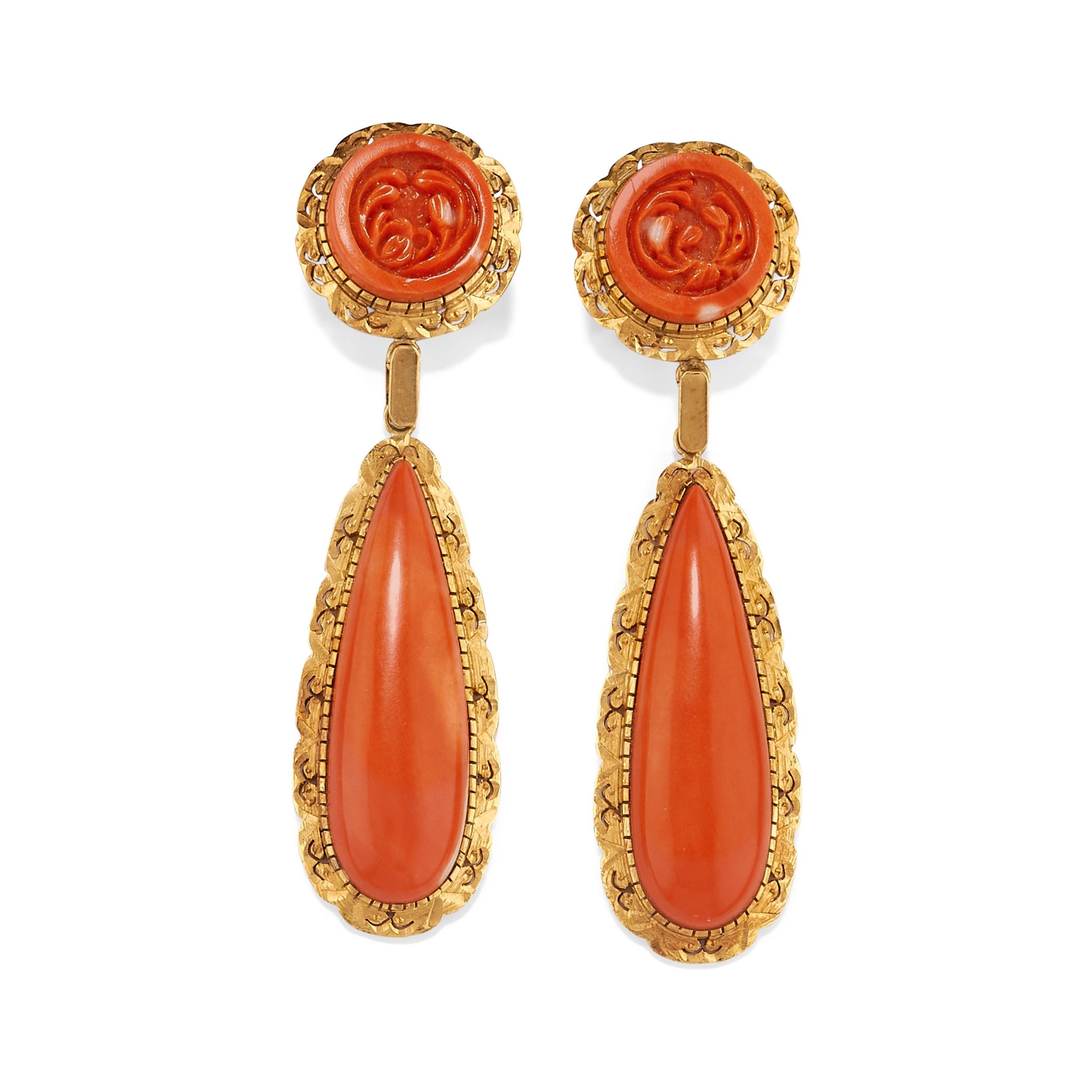 Orecchini pendenti con corallo  - Asta Gioielli - Associazione Nazionale - Case d'Asta italiane