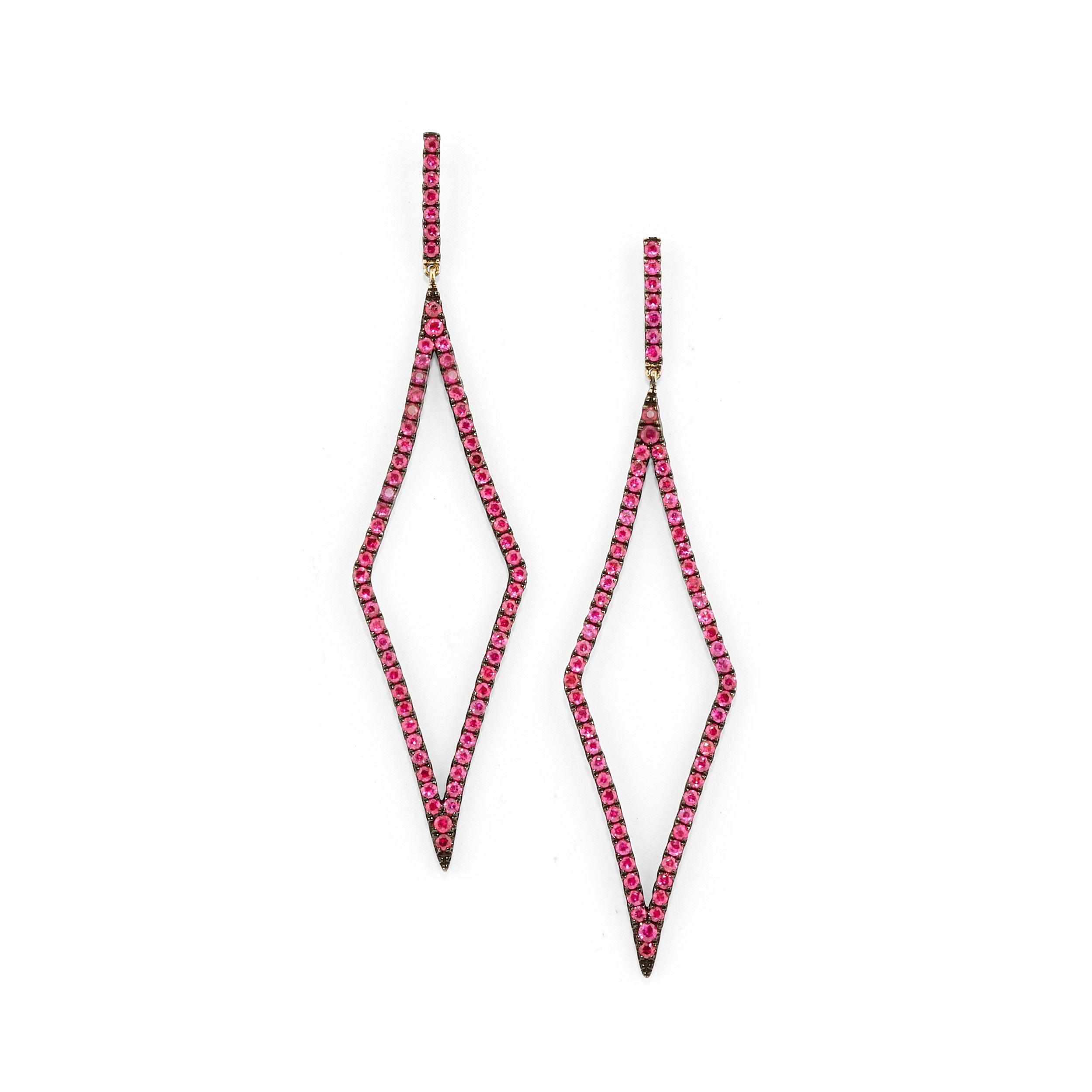 di forma romboidale, rubini taglio rotondo per totale ct 2,30 circa, chiusura perno e farfalla.