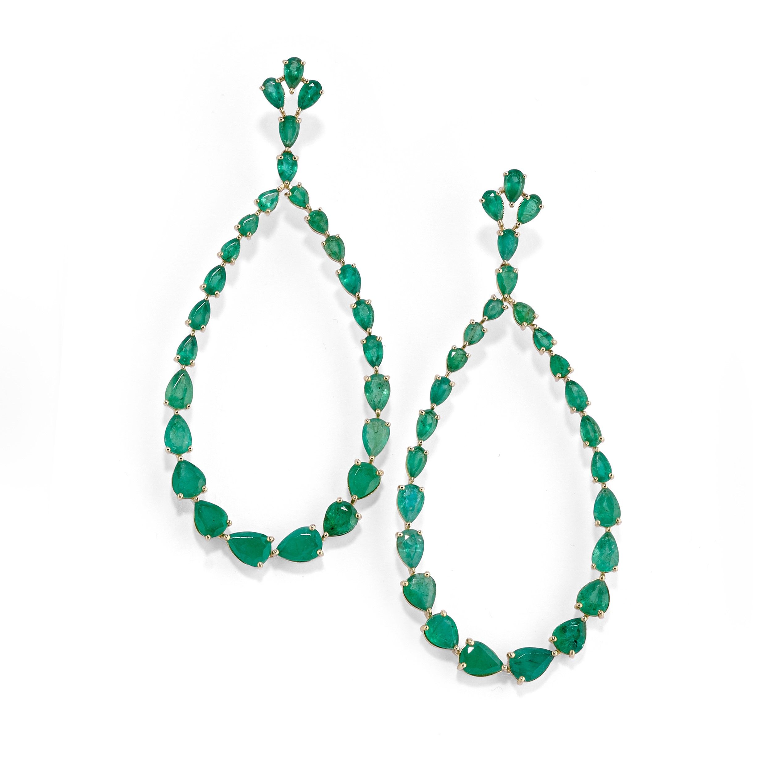 realizzati a grandi gocce con smeraldi taglio goccia per totale ct 15,00 circa, chiusura perno e farfalla.