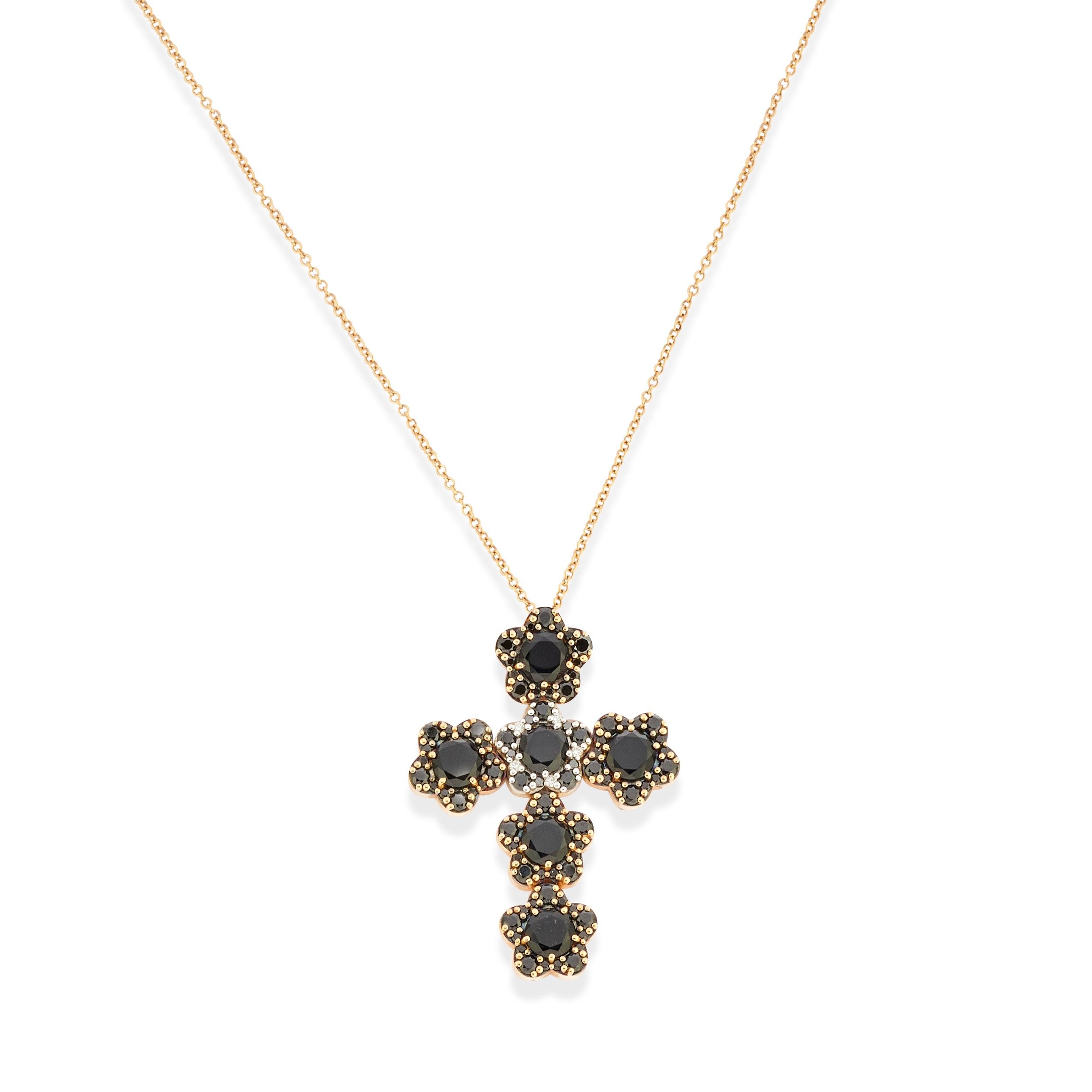 con motivi a fiore in onice taglio rotondo, trattenuto da catenina.