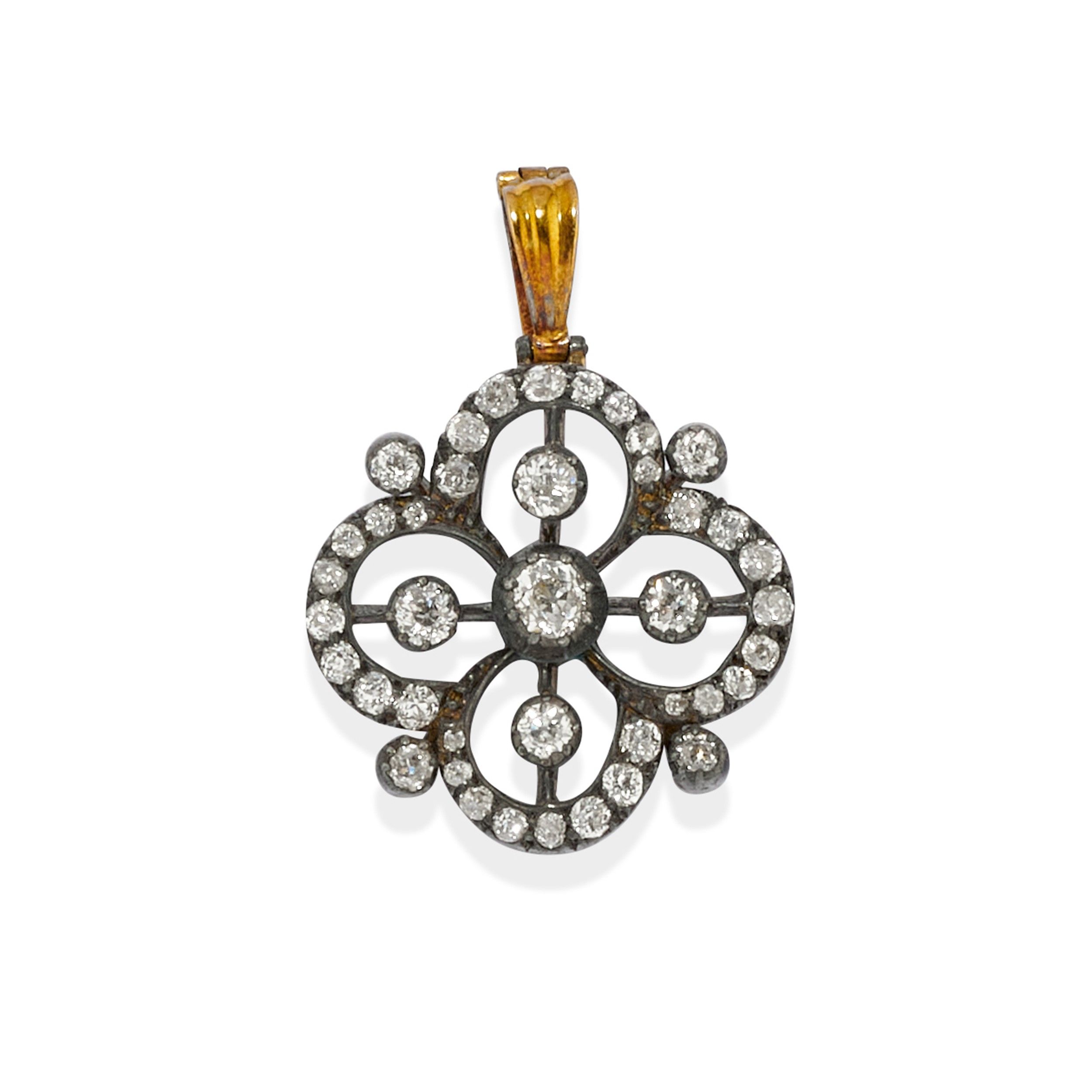 XIX secolo a quadrifoglio, in diamanti taglio vecchio per totale ct 3,00 circa.