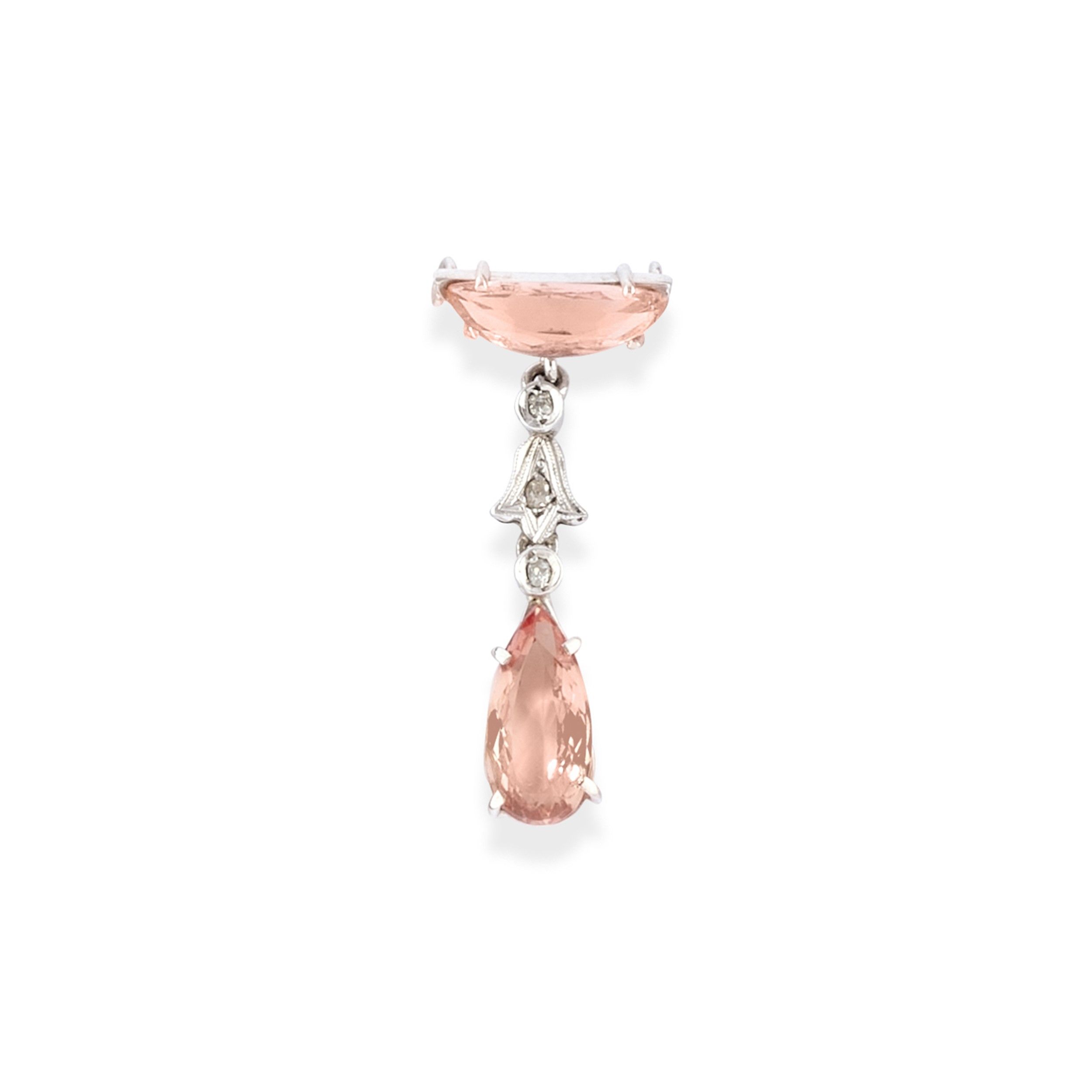 con topazio imperiale rosa taglio fantasia e goccia, piccoli diamanti taglio rosa a decoro.