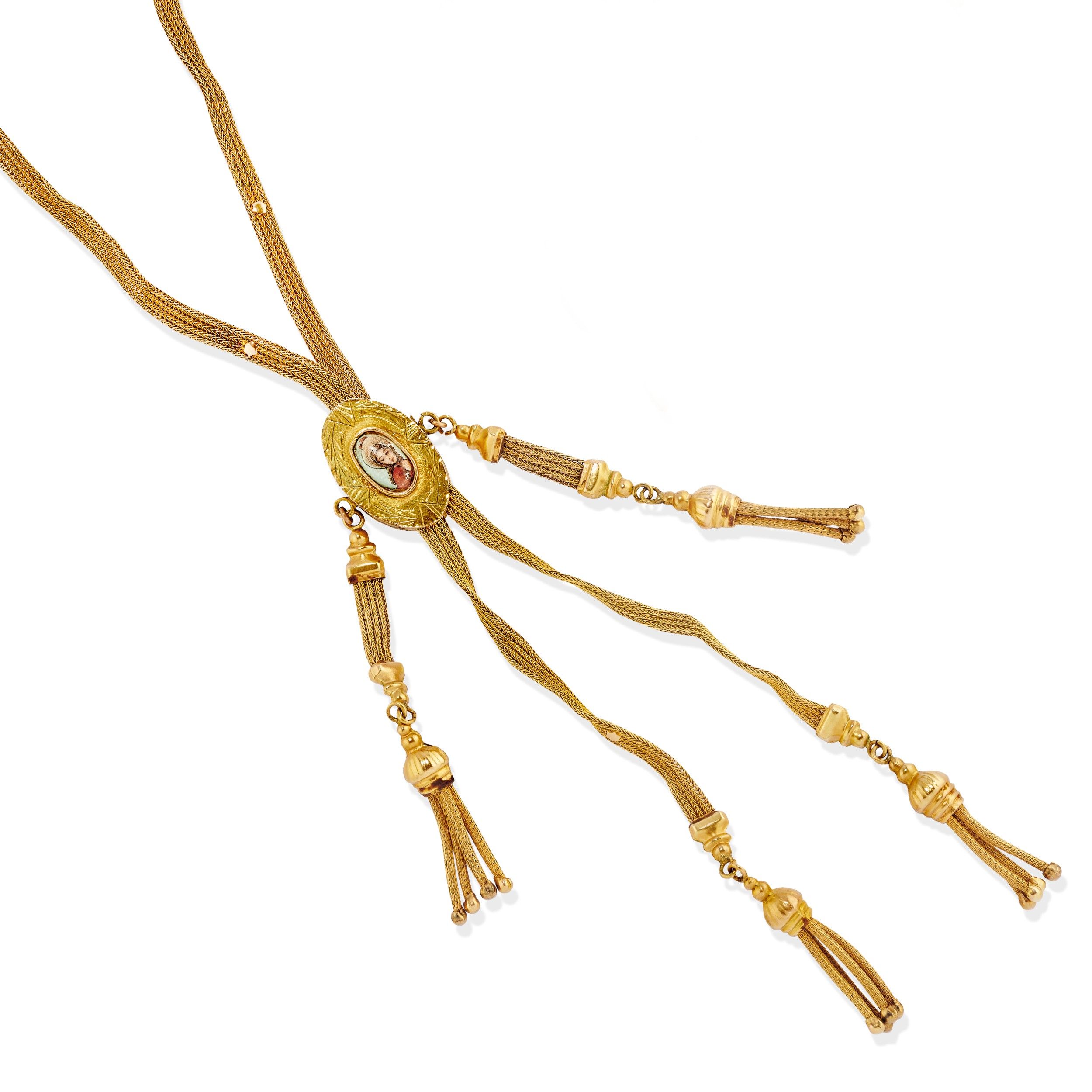 al centro miniatura con profilo femminile, terminali frangiati.