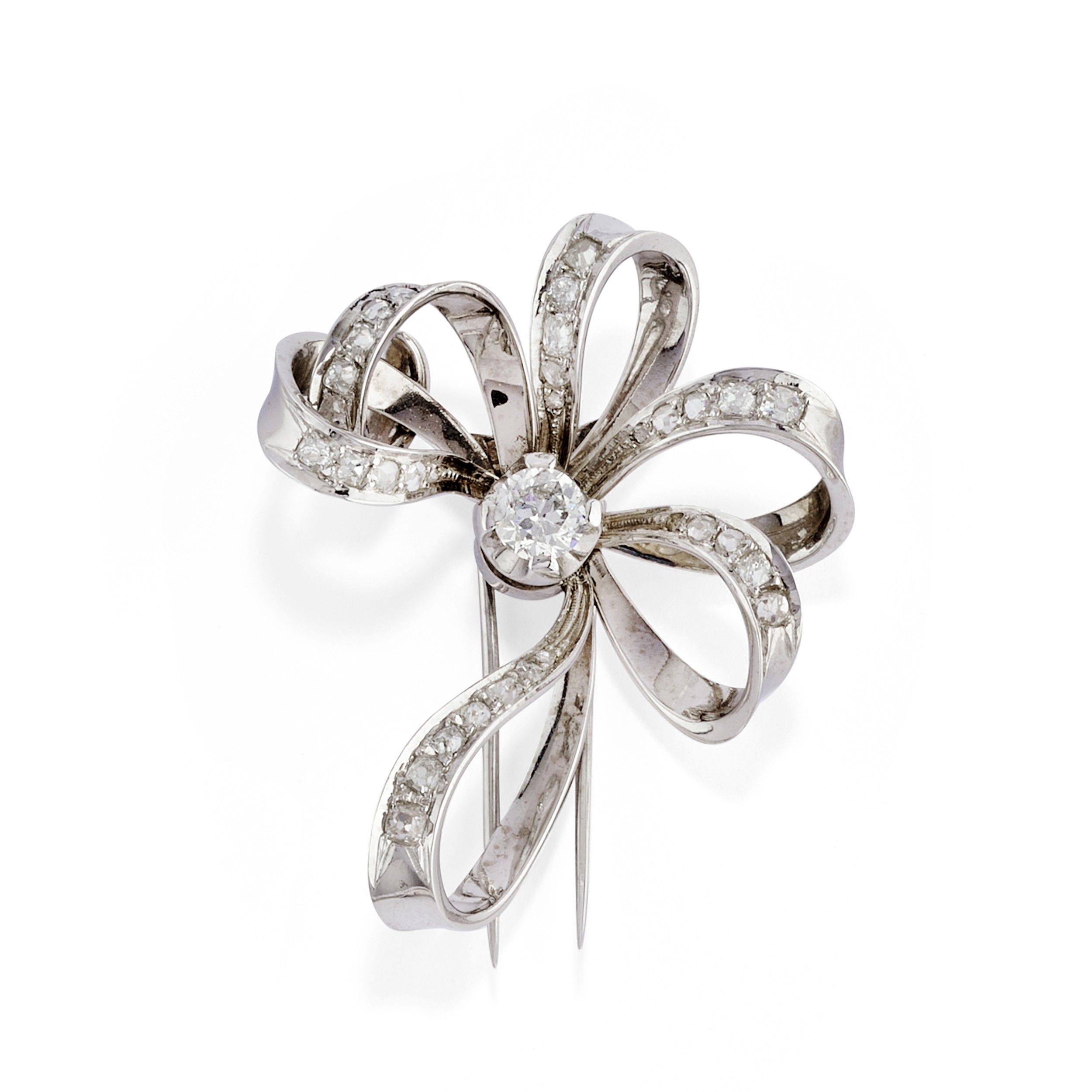 al centro diamante taglio vecchio di ct 1,00 circa, volute decorate da diamanti taglio vecchio e rosa.