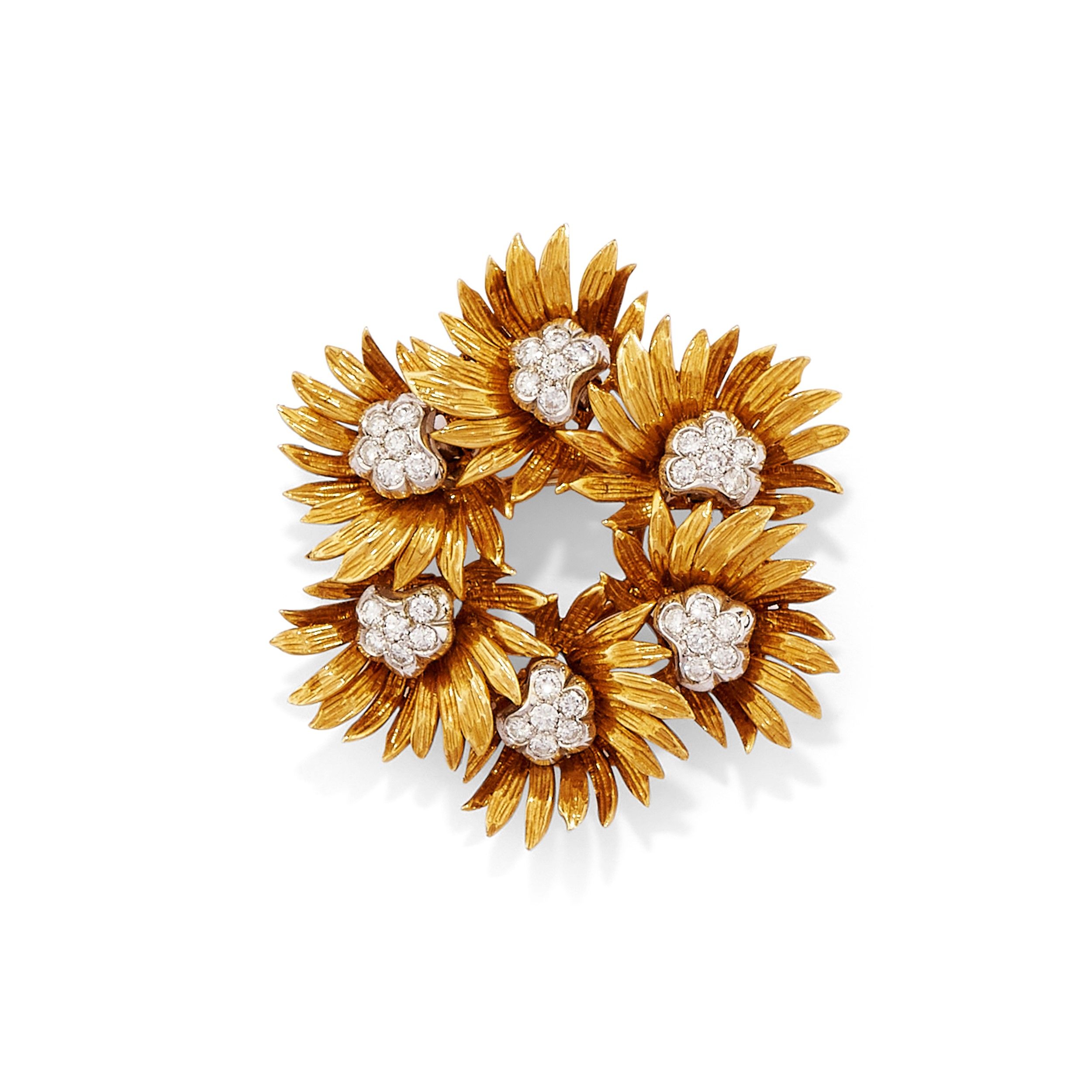 di forma rotonda con petali incisi, diamanti taglio brillante per totale ct 0,70 circa a decoro.