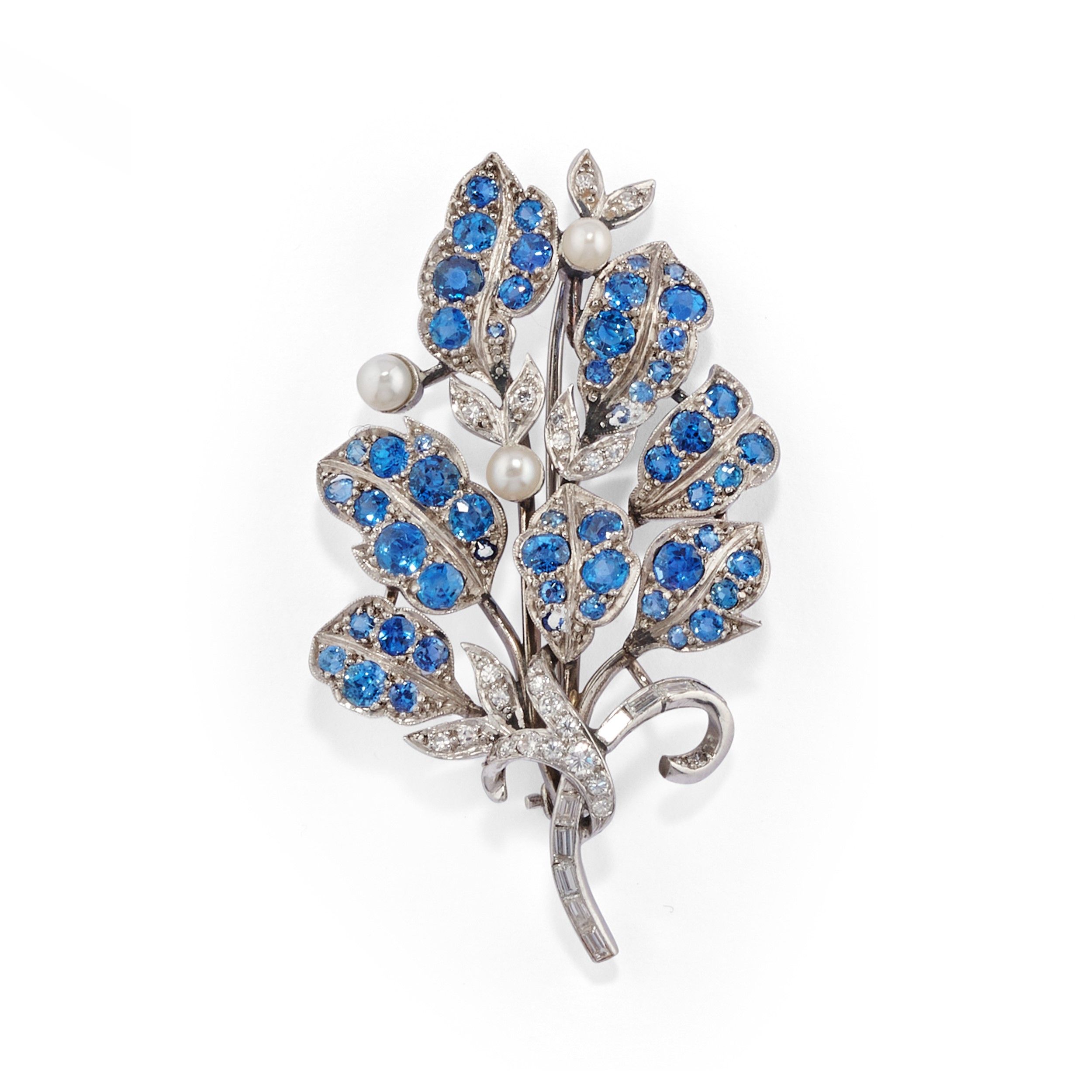 a ramage con zaffiri Montana taglio rotondo e diamanti taglio brillante, huit-huit e baguette.