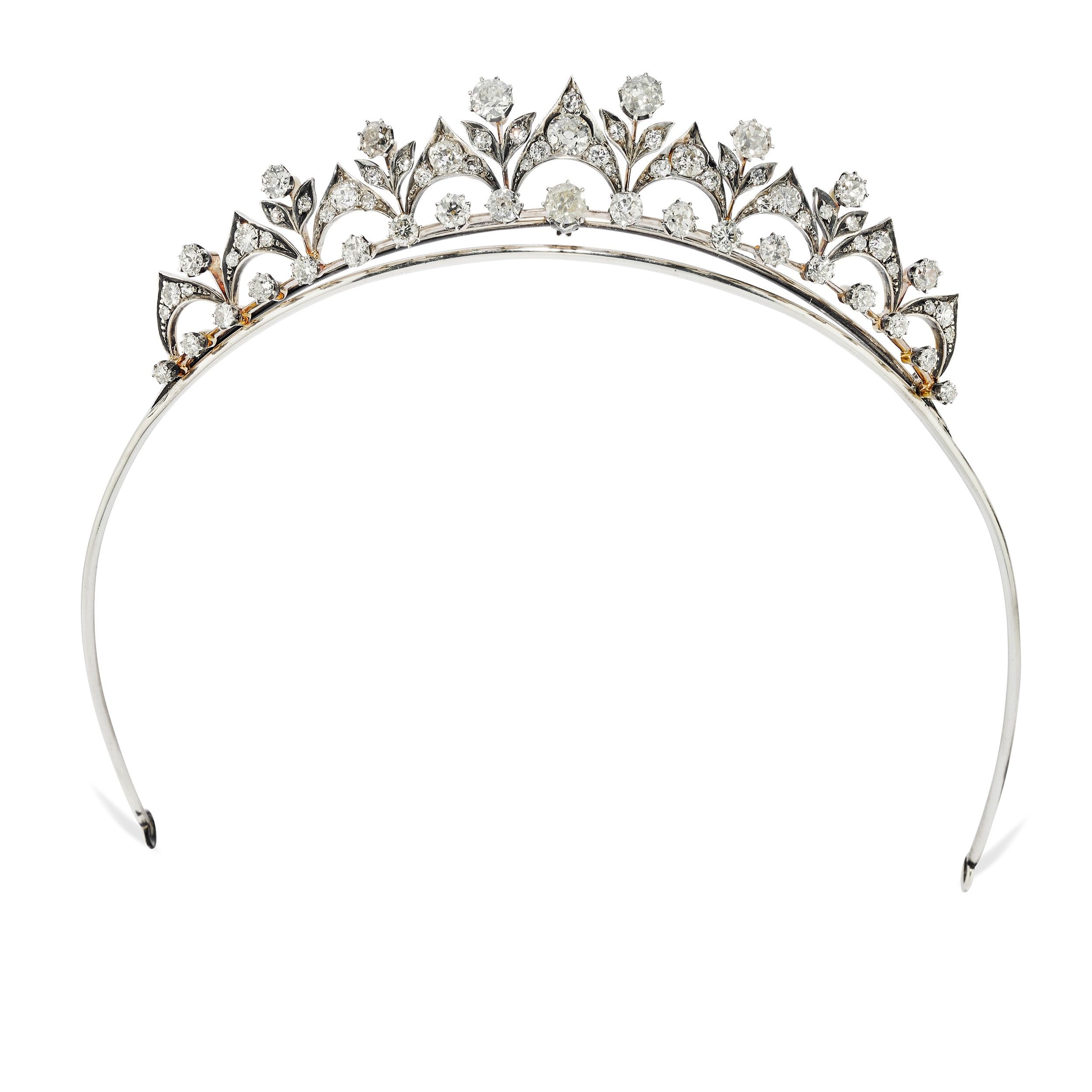 in argento e oro giallo 9k, Peso g 31,40 diadema cm 15,00, supporto cm 30,00