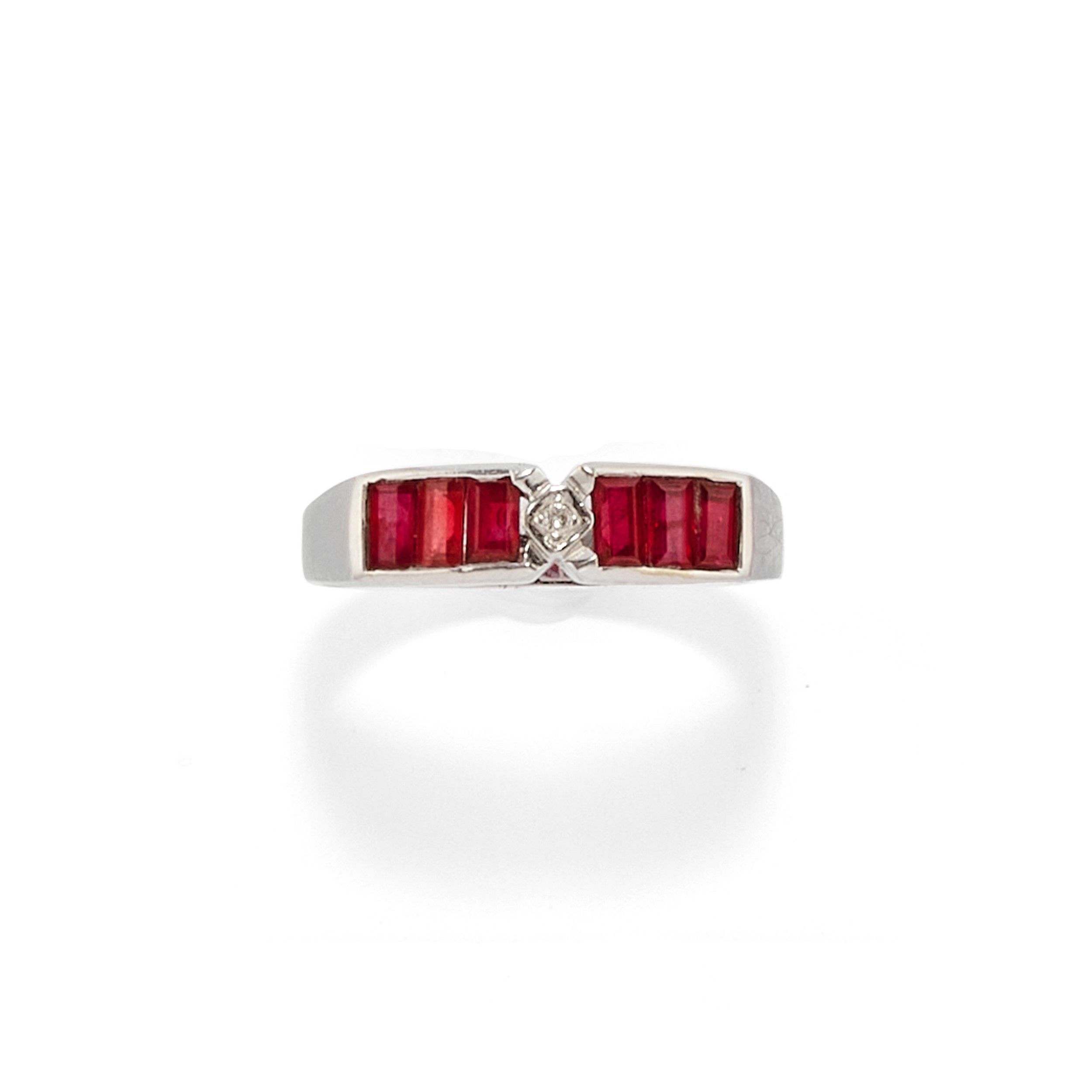 decorati con diamanti taglio brillante e huit-huit e rubini taglio baguette.