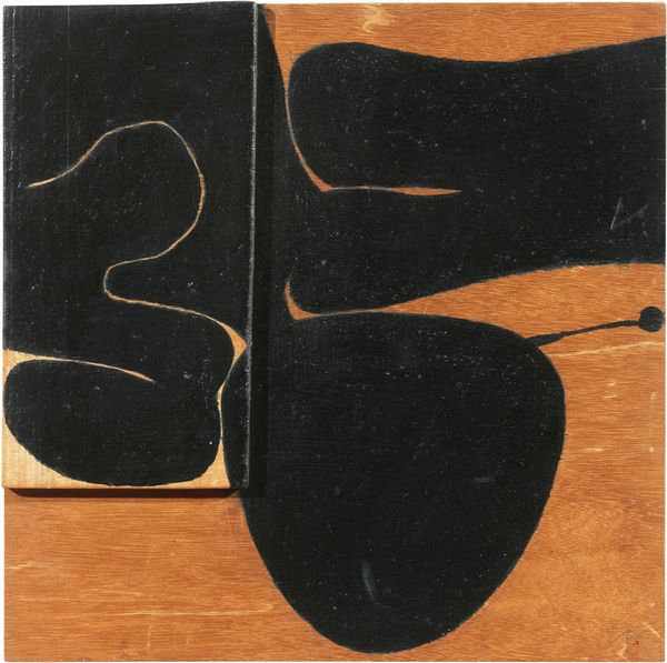 Olio e collage di legni su tavola, cm. 40,5x40,5