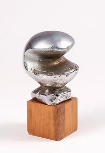 Scultura in metallo cromato su base in legno, multiplo, cm. 15,5 h. (con base) 1933 Sigla sulla base della scultura: [..]