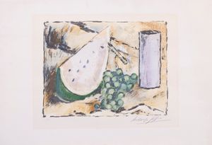 Litografia, es. 26/125, cm. 28x30 (lastra), cm. 45x64 (carta) 1960 Firma in lastra in basso a destra: Soffici; [..]