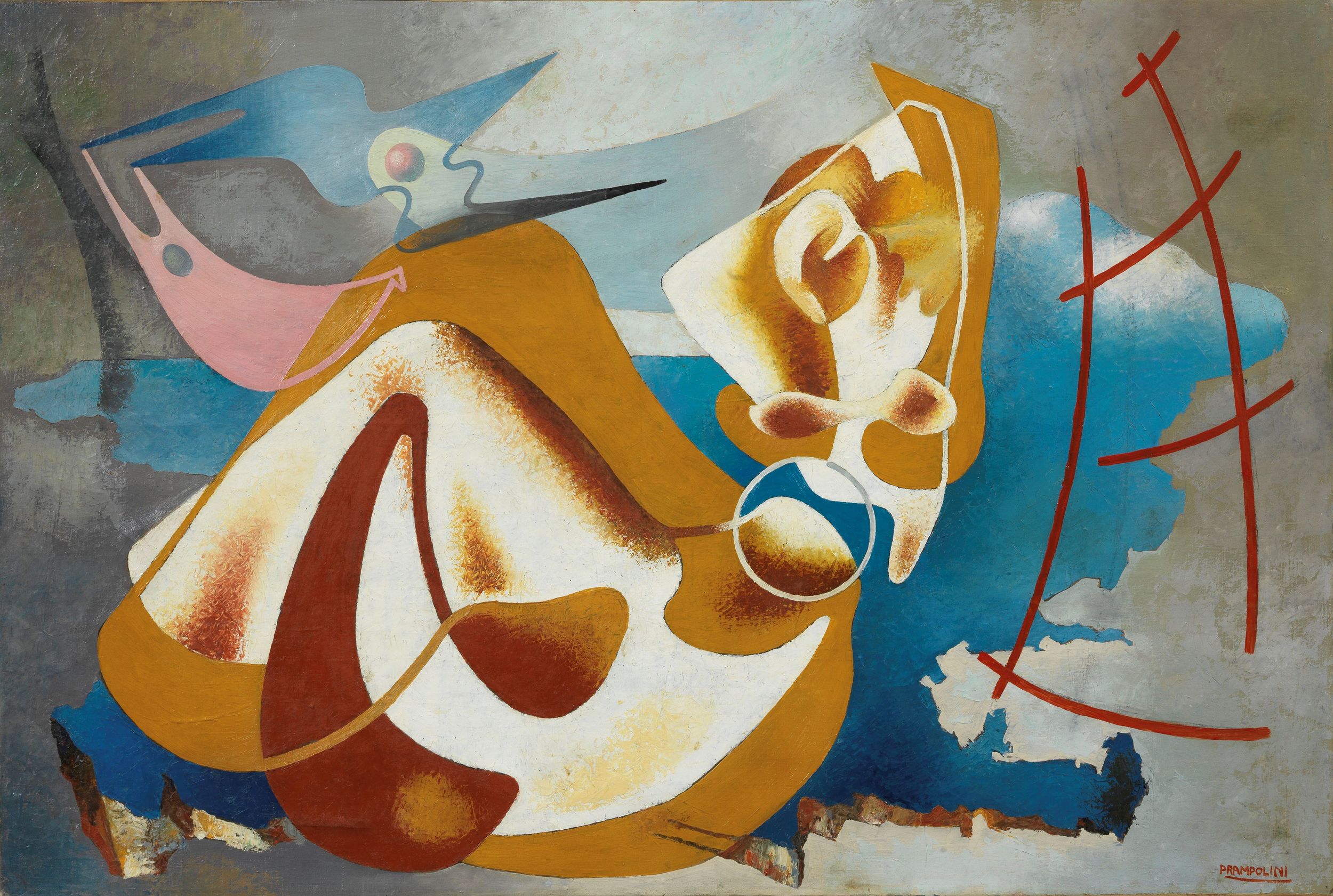 Olio su tela, cm. 98x146 (1929-30 ca.) Firma in basso a destra: Prampolini. Al verso sulla tela: etichetta Seconda Quadriennale d'Arte Nazionale / Roma - MCMXXXV - A.XIII; sul telaio: timbro Studio di / Enrico Prampolini / Roma: etichetta XVII Esposizione Internazionale d'Arte - Venezia 1930.