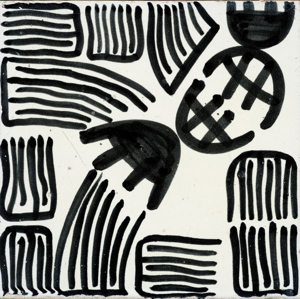 Smalto in bianco e nero su terracotta, cm. 20x20