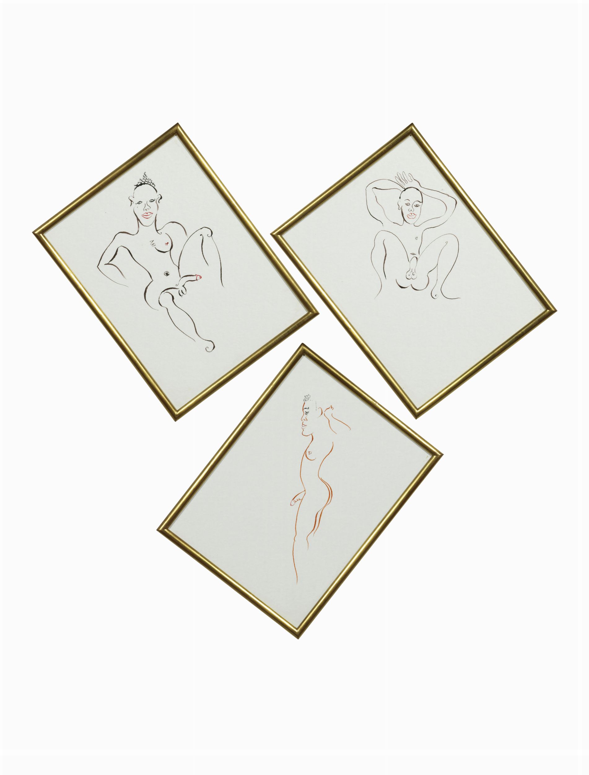 Tre inchiostri su carta, cm. 51x38,7 ognuno