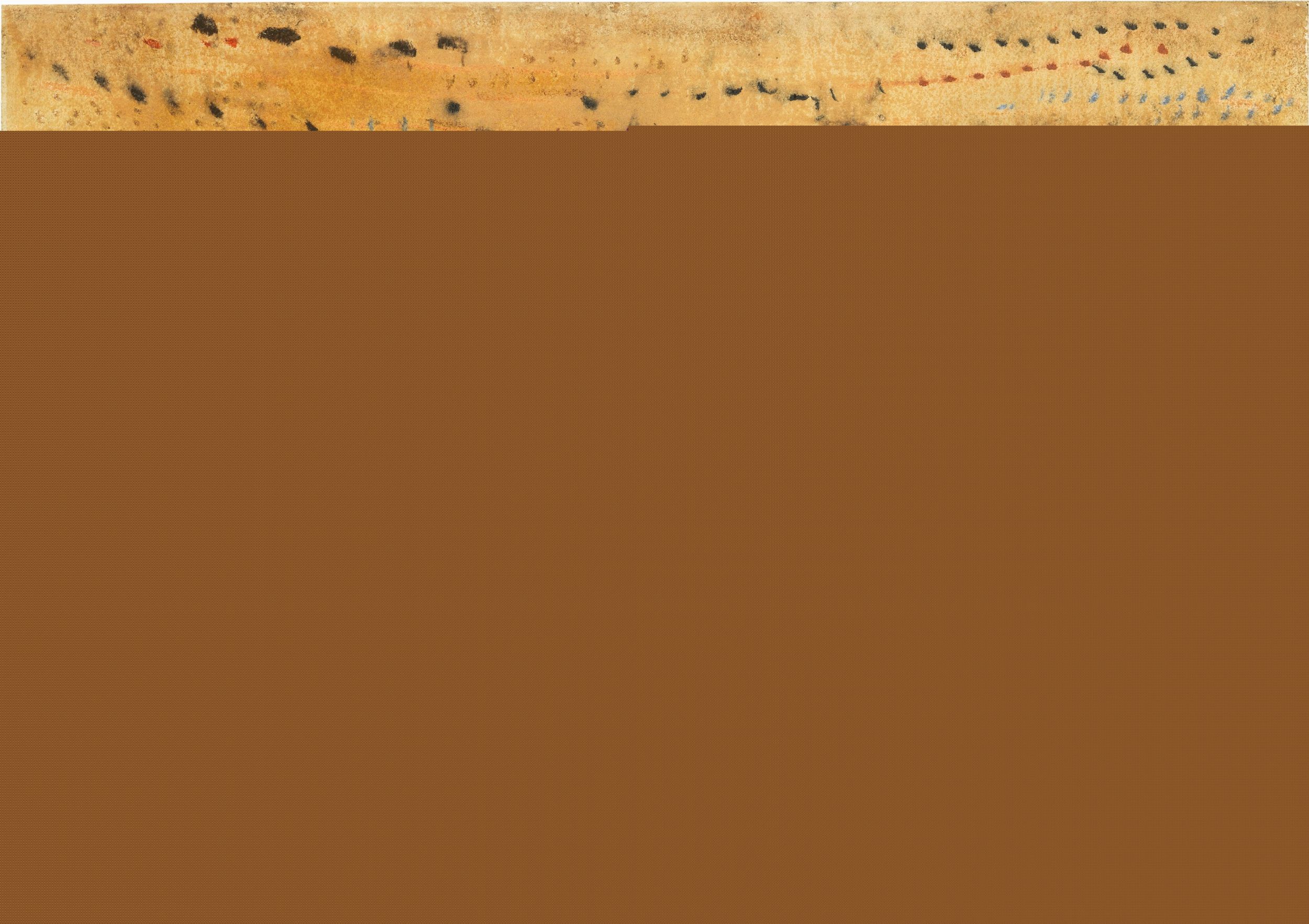 Gouache su carta applicata su tela, cm. 45x64 1958 Firma e data in basso al centro: Music / 1958; firma e data al verso della carta: Music / 1958; sulla tela: timbro Galleria d'Arte Moderna San Giorgio: timbro Galleria Il Traghetto, Venezia; sul telaio: timbro Colussa Galleria d'Arte, Udine: due timbri Galleria Il Traghetto, Venezia: timbro Galleria d'Arte Aldobrandeschi, Grosseto: etichetta Opera Esposta / Dicembre 2003 / Galleria / Artestudio Clocchiatti / Udine.