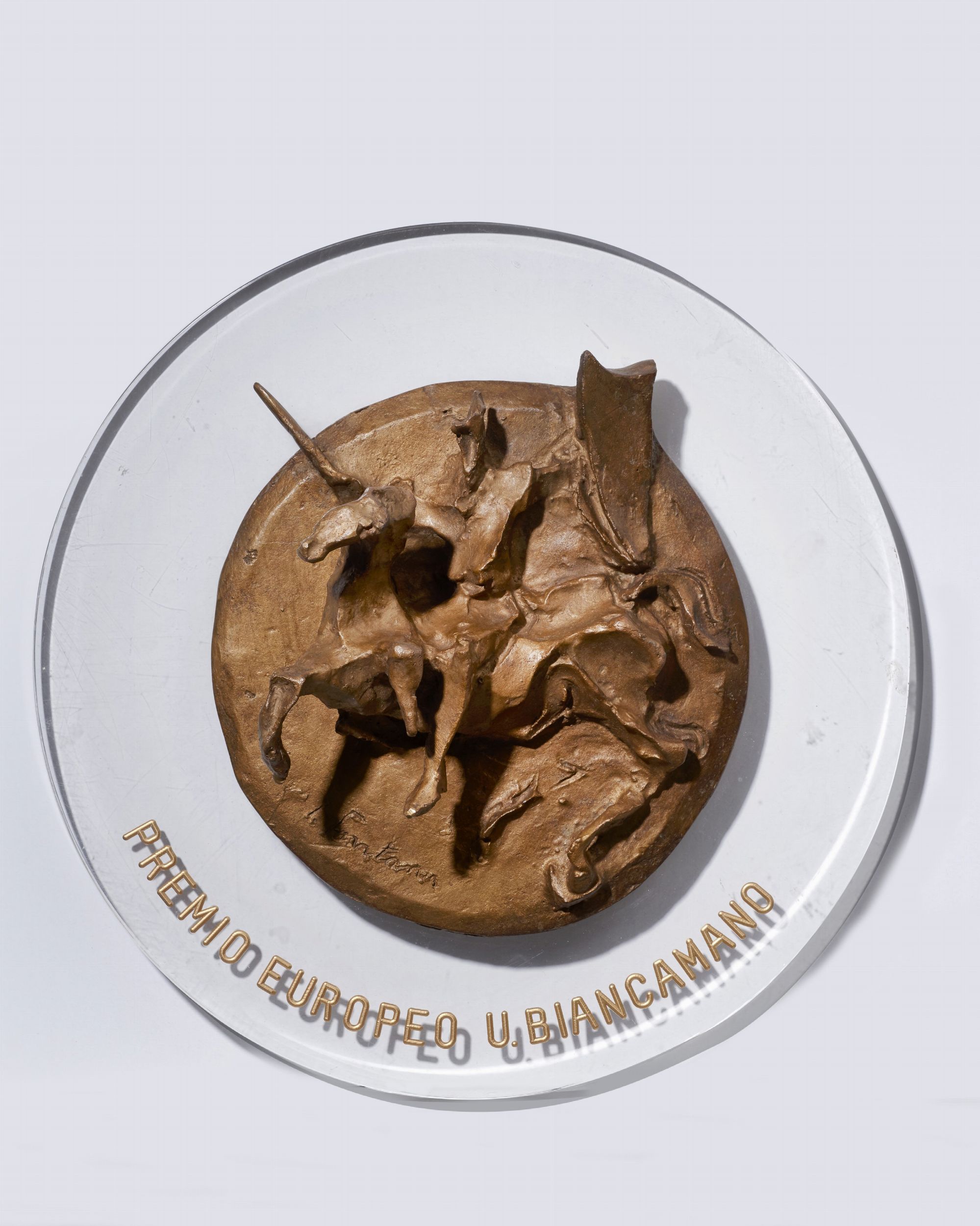 Bassorilievo in bronzo, multiplo, cm. 20 ø, cm. 27 ø (con supporto in plexiglass)