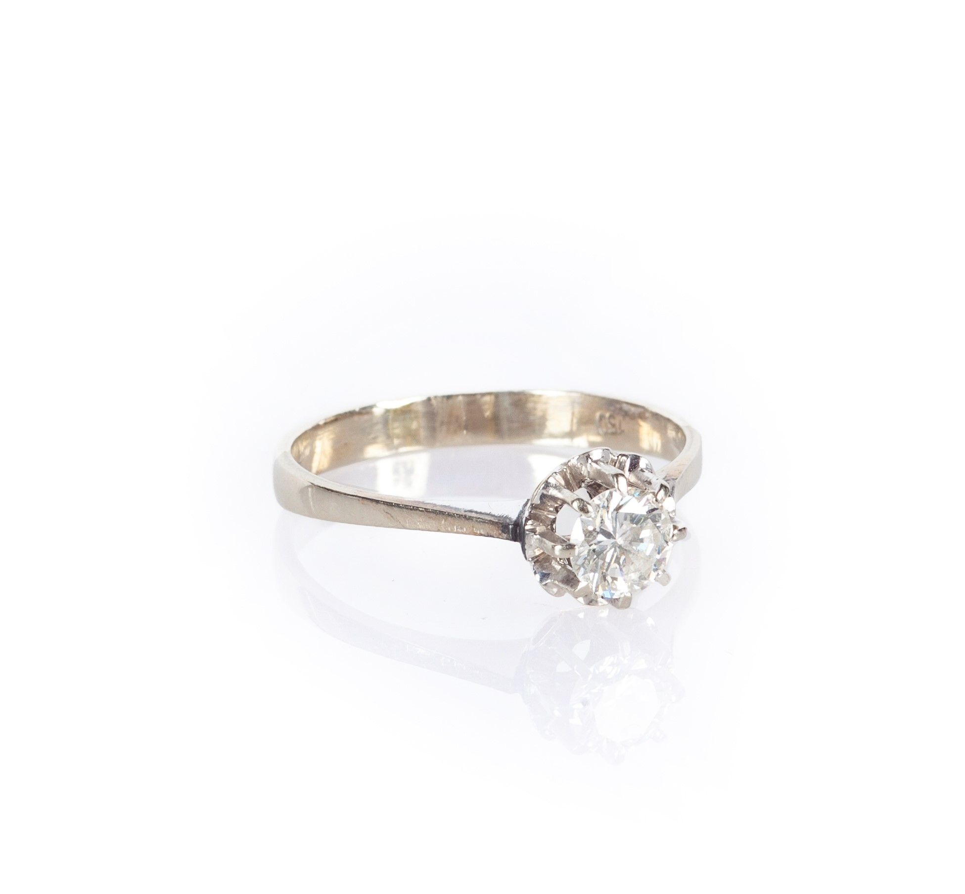 Oro bianco 750/000. Diamante in taglio rotondo brillante ct. 0,60 ca. , prob H, VVS-VS. Peso complessivo gr. 3,20.