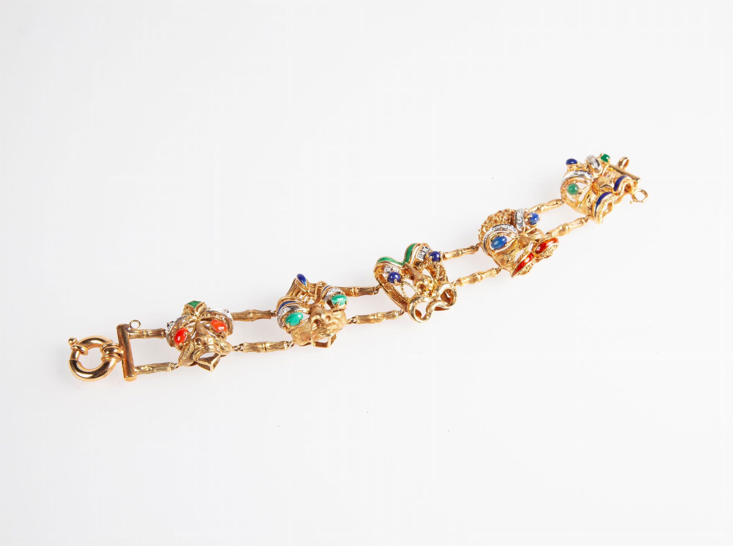 Bracciale mascheroni in oro smalti e pietre
