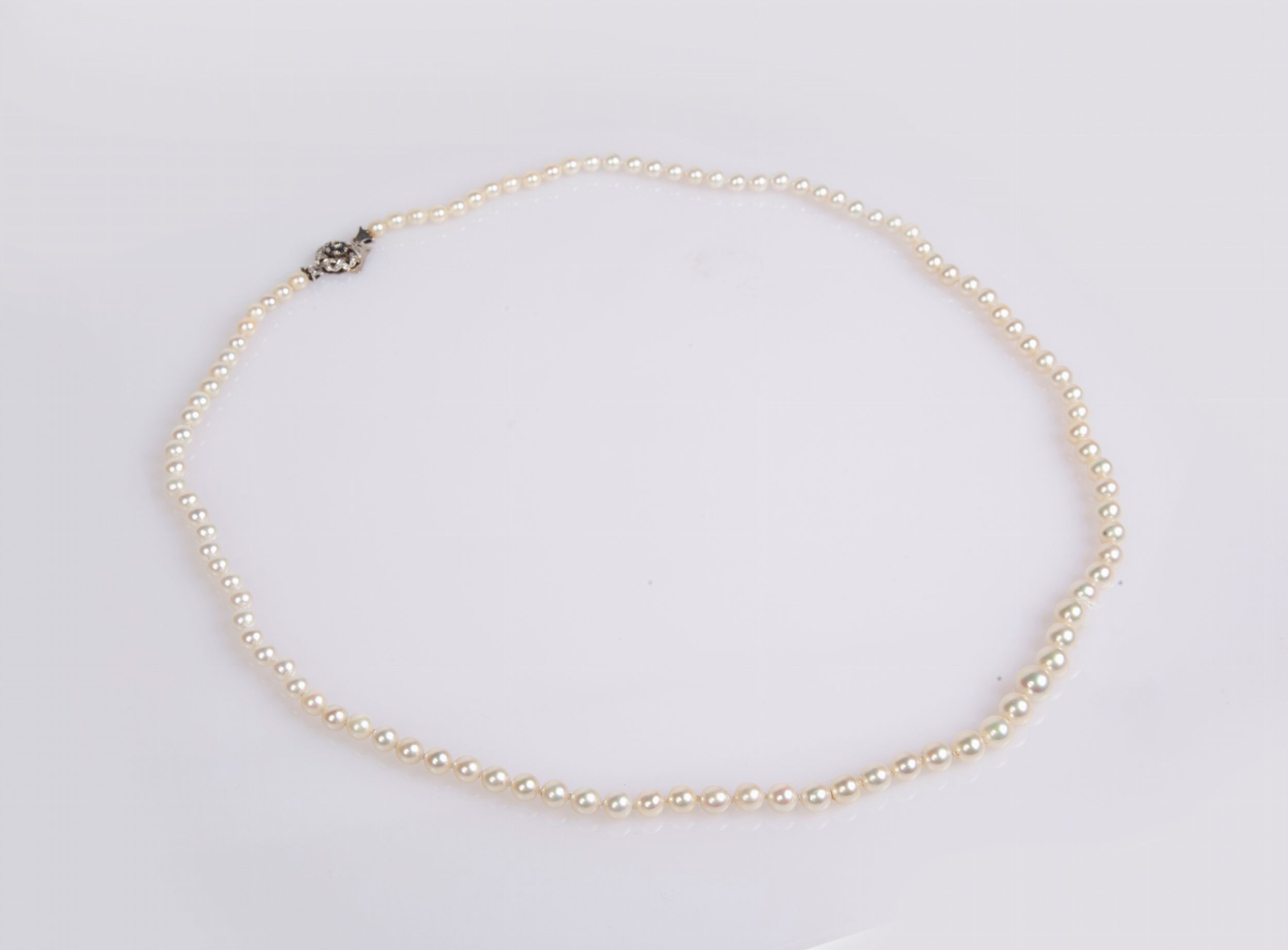 Oro bianco 750/000, perle da coltivazione in acqua marina da mm.5 a mm. 8.