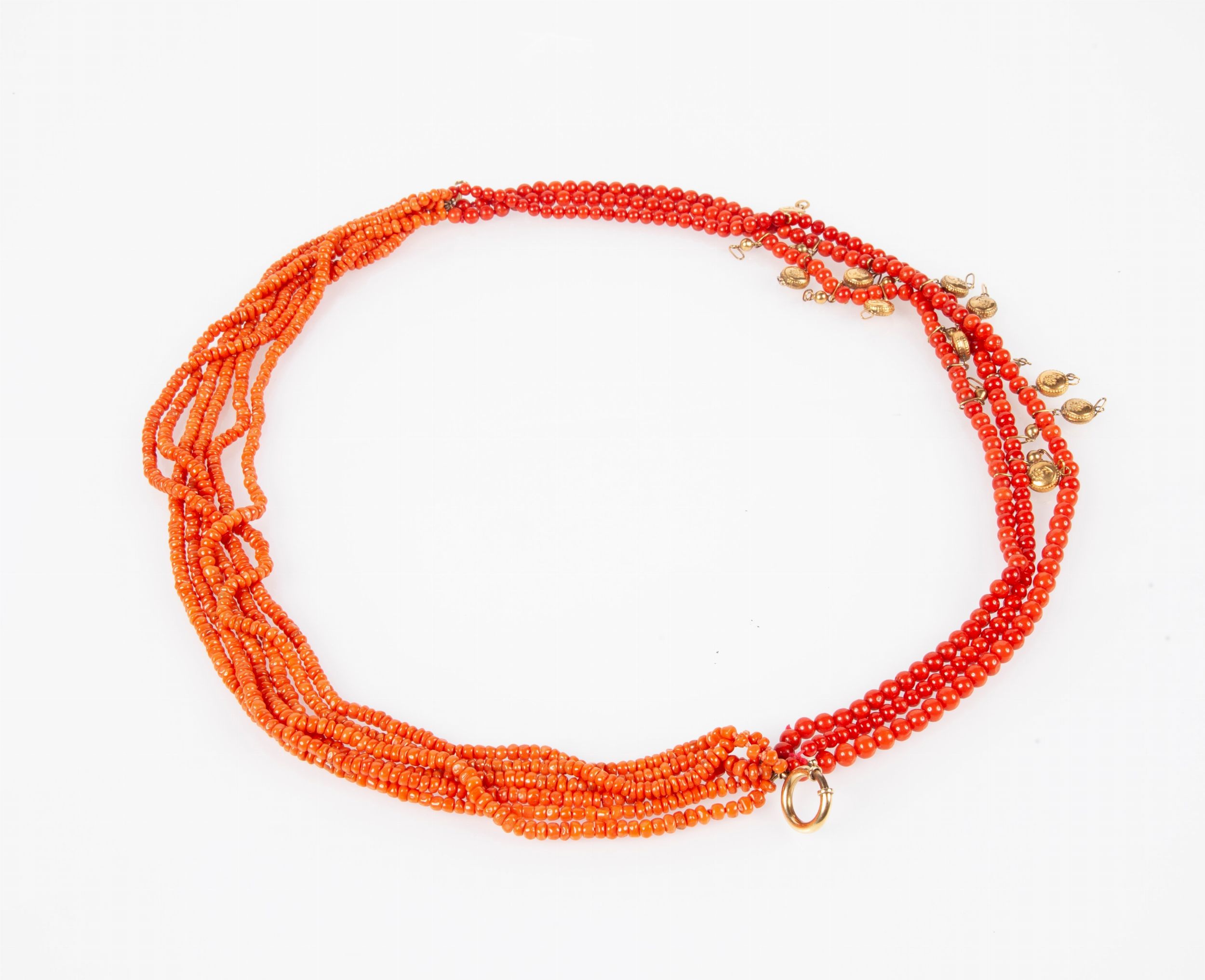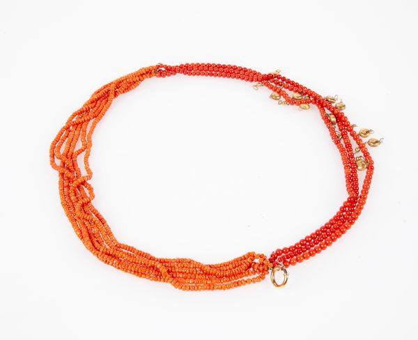 Corallo arancio e rosso in vari tagli . Peso complessivo gr. 160.