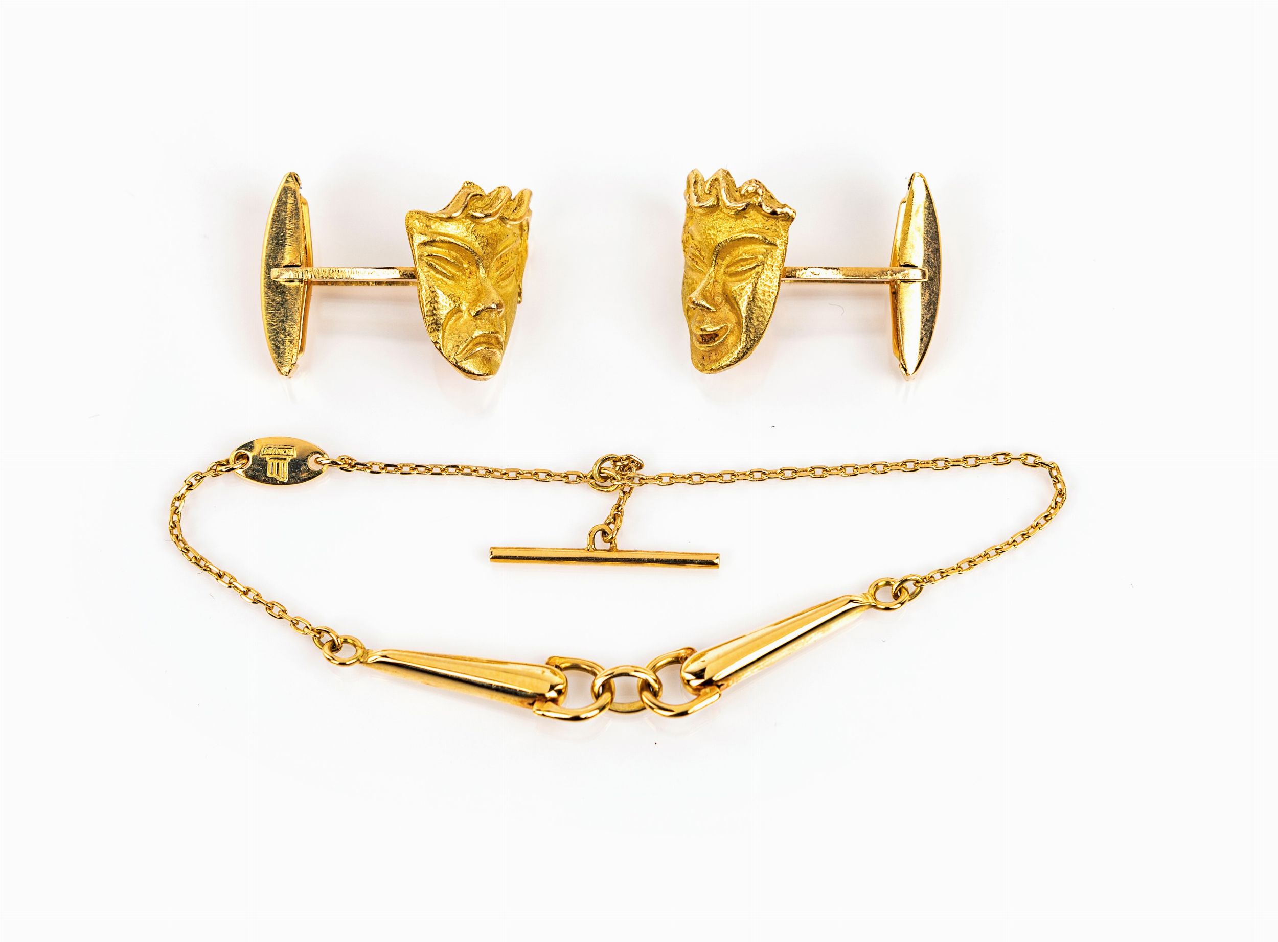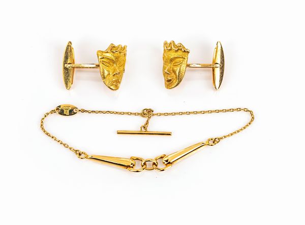Coppia di gemelli e fermacravatta in oro