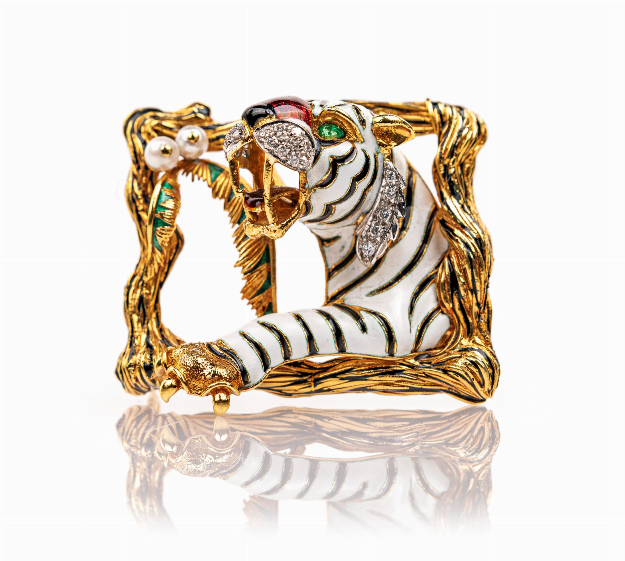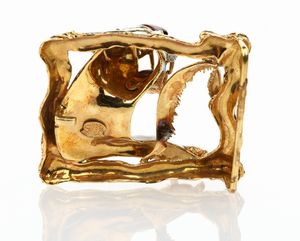 Il gioiello appartiene alla collezione Bestiario feroce prodotta tra il 1966 e il 1971 da Frascarolo, contrassegnata da marchio identificativo che ne esplicita autenticità e origine italiana, e che contribú nei decenni successivi a consolidare il successo del made in Italy nel mondo.