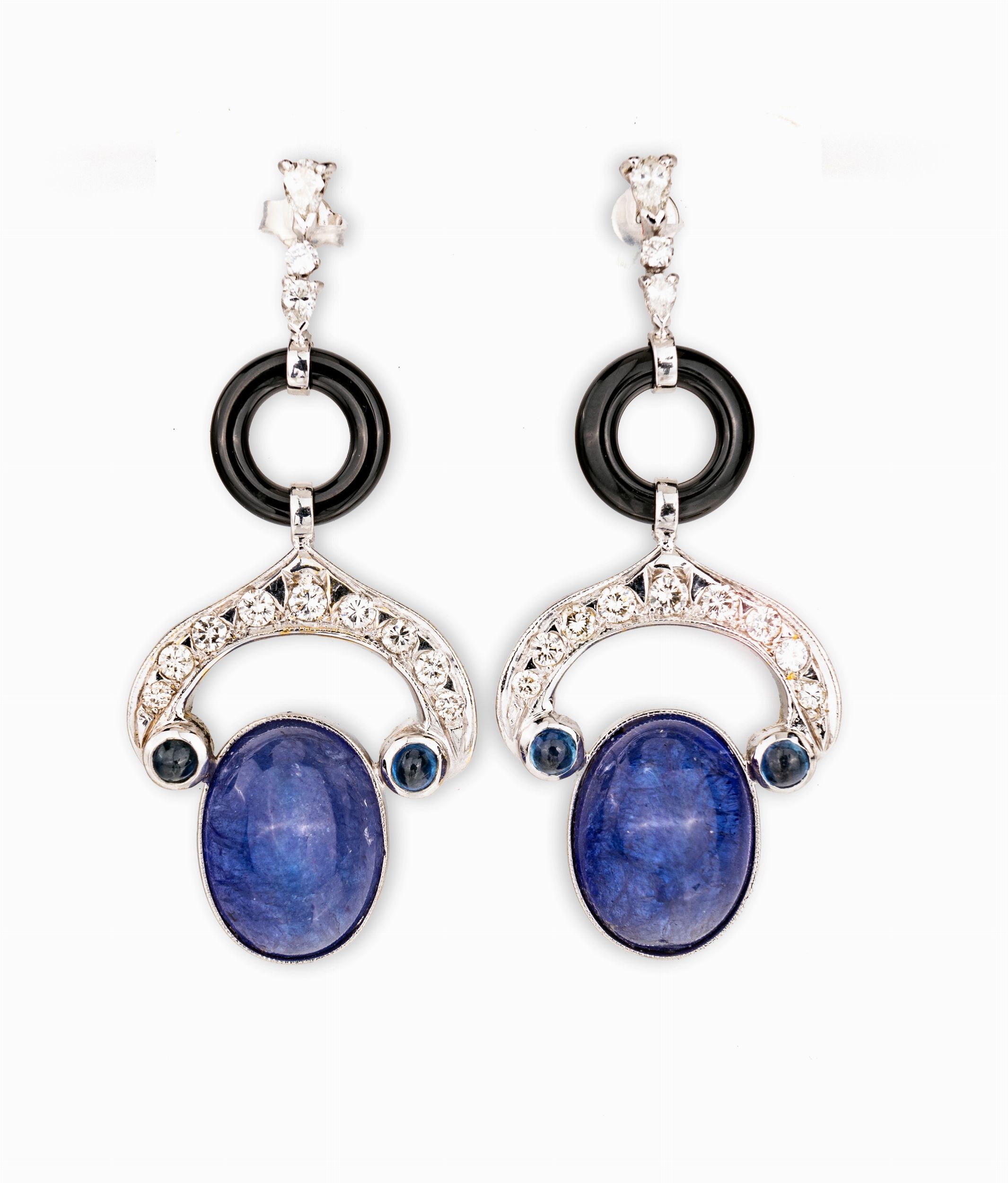 Oro bianco 750/000. Diamanti in taglio rotondo brillante ct. 1,50 ca, tanzanite in taglio cabochon ct. 12 ca.