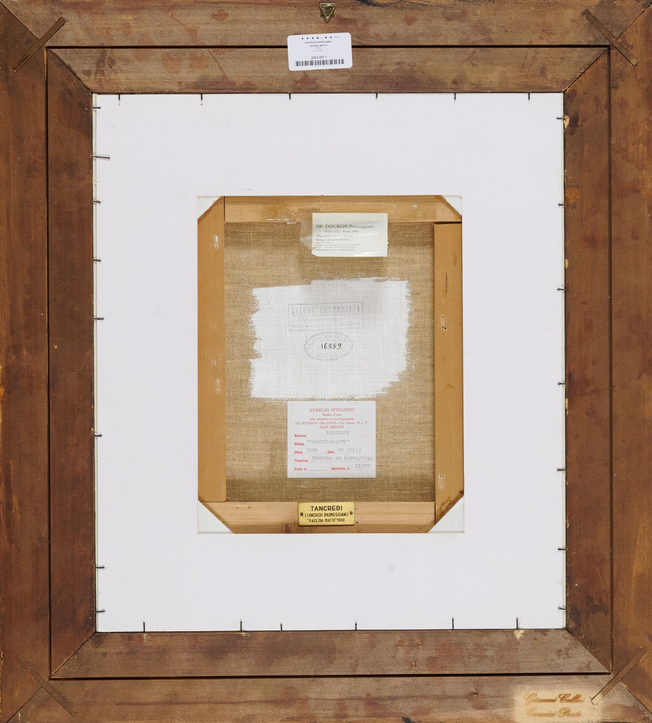 Firma e data in basso a destra.Sul verso: timbro Salone Annunciata, Milano con n° 16959. Etichetta: Aurelio Stefanini Studio d'Arte, Firenze, con descrizione.
